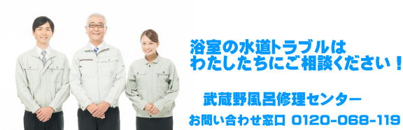 武蔵野風呂修理センターは武蔵野市の浴室修理専門業者です。シャワーの水漏れ、水圧が弱い、排水溝の流れが悪い、水栓の交換がしたいなどお気軽にお問い合わせください。